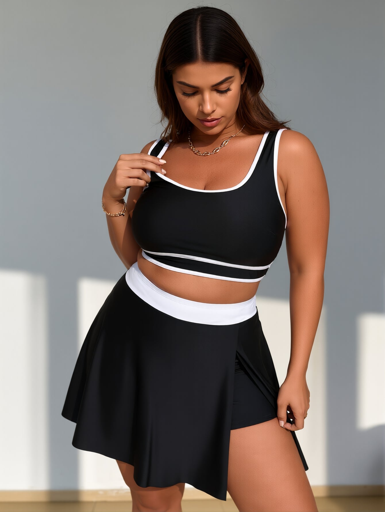 Women's High Waisted Bikini Sets Tummy Control Swim Skirt Two Piece Swim Suit Tummy Control Color Block Bathing Suit