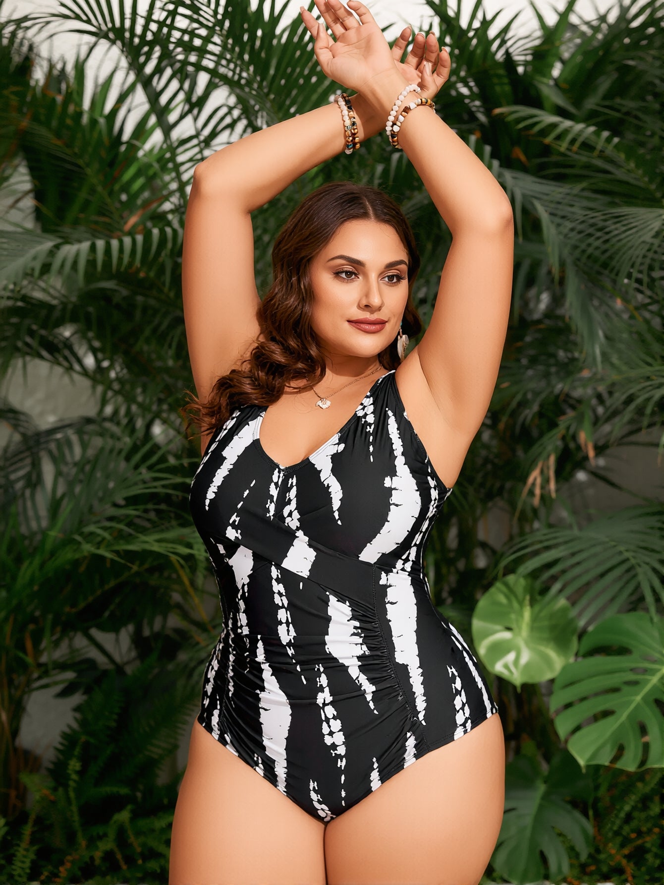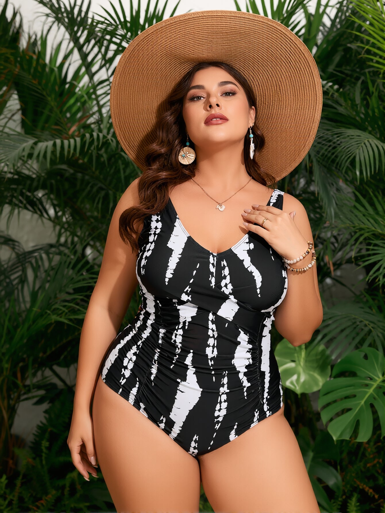 PLUS SIZE Women's One Piece Swimsuit Tummy Control V Neck Bathing Suits