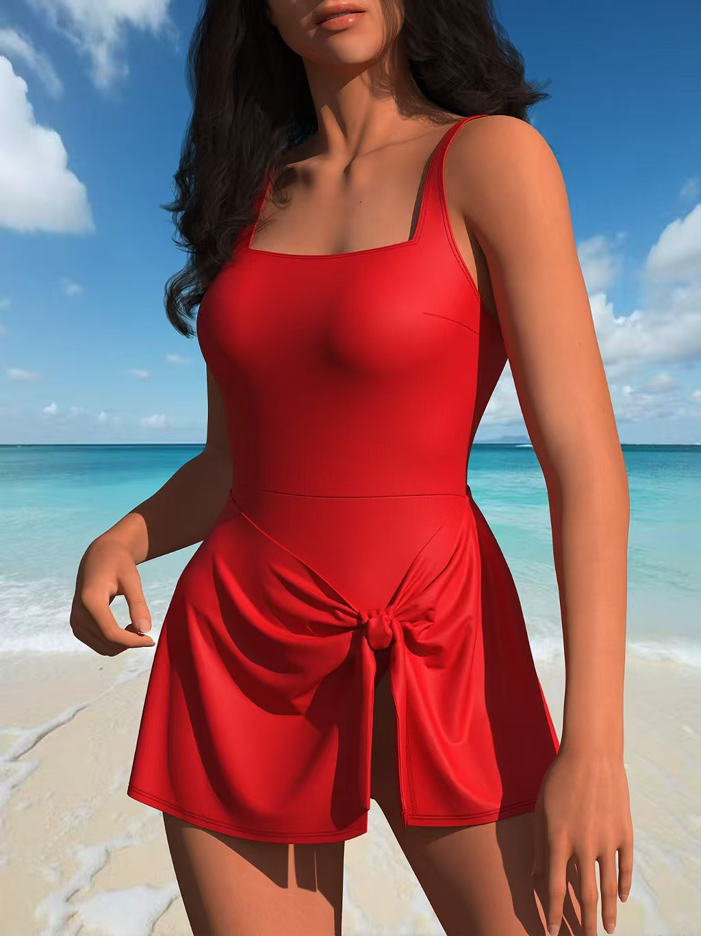 - Women skirted swimdress with adjustable fit, the front twist detail elegantly accentuates your figure, while removable bra pads and adjustable straps ensure a customized fit. The crisscross back adds a charming, feminine touch