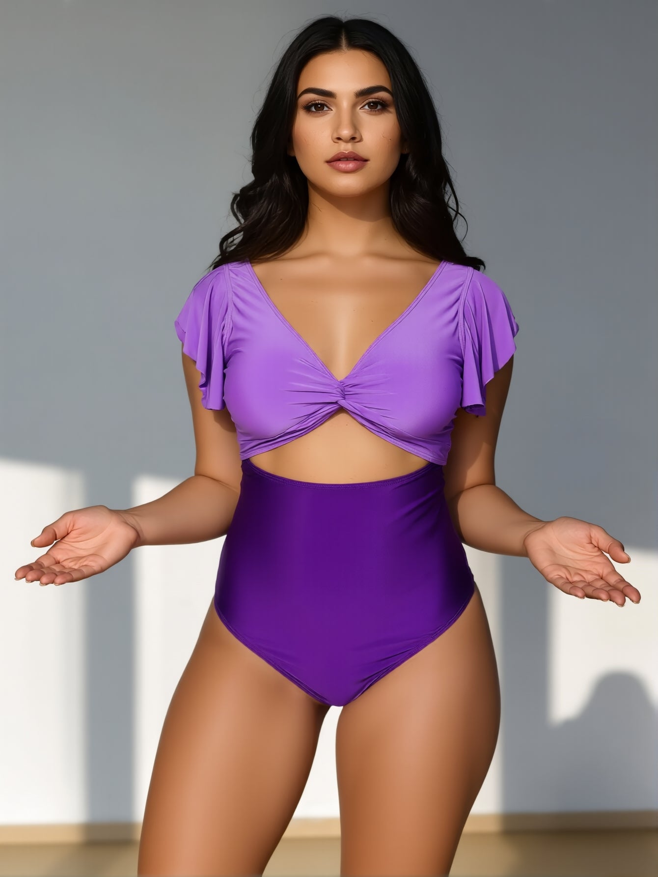Women's Tummy Control Swimsuits Slimming Cute One Piece Bathing Suit Ruffle V Neck Swimwear