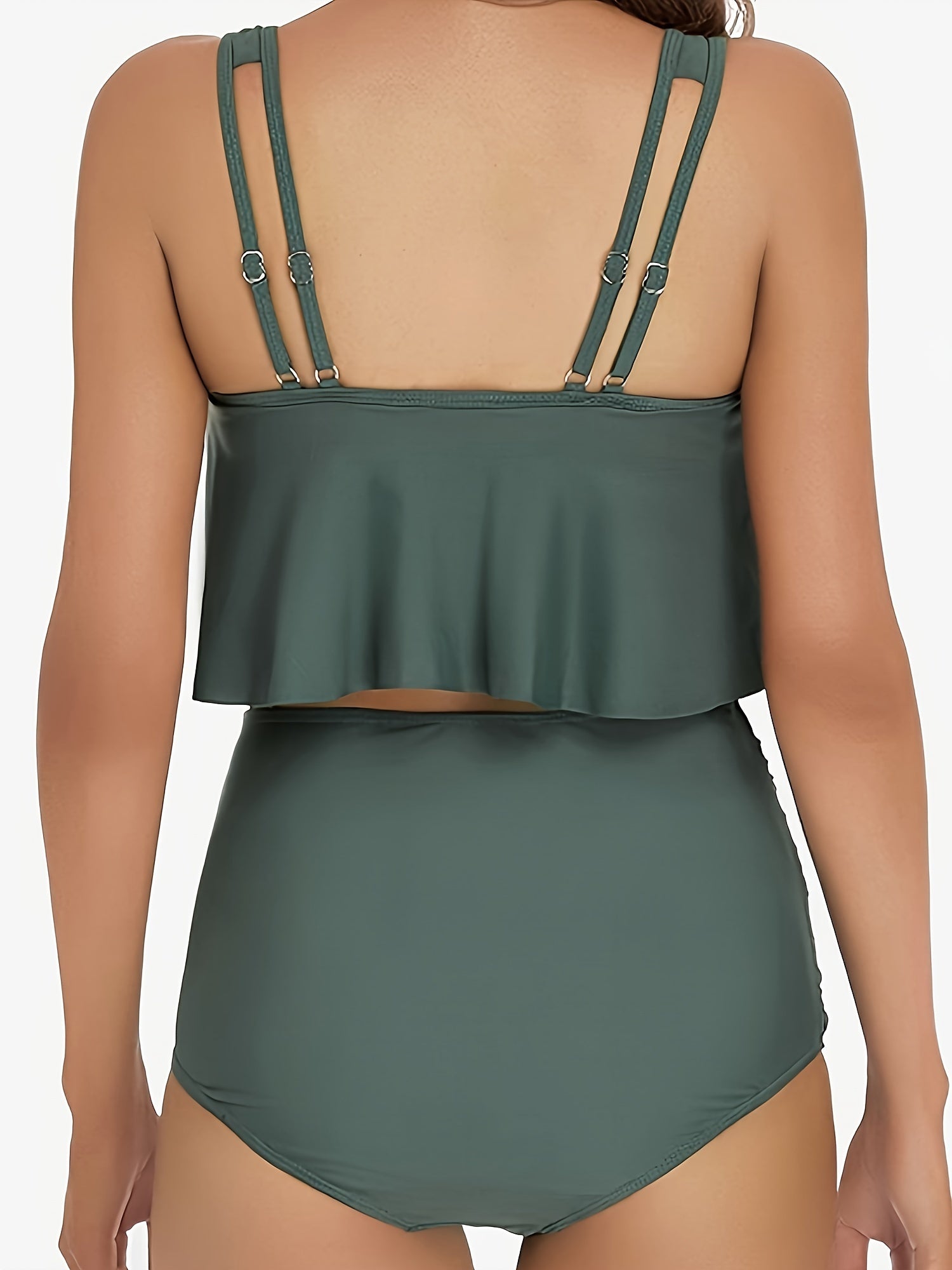 High Waisted Tankini Swimsuits for Women Two Piece Bathing Suit Ruffle Tie Back Swim Top with Tummy Control Bottom