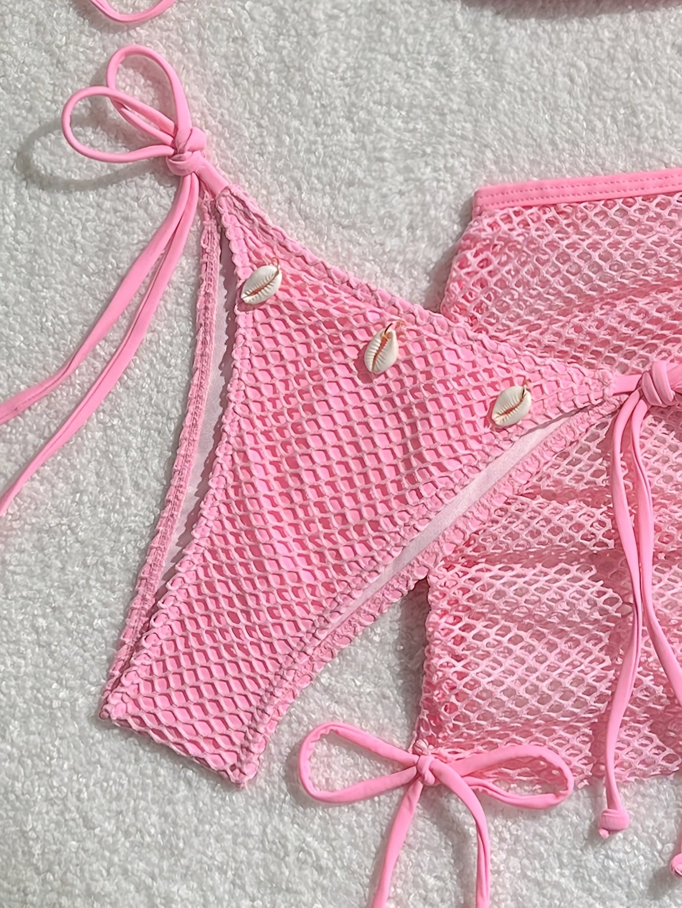 • 3 Piece Swimsuits for Women: This stylish 3-piece bikini set features a triangle halter bikini top with adjustable ties, mid-waist bikini bottom, and an eyelet embroidery cover-up, providing multiple wearing ways.