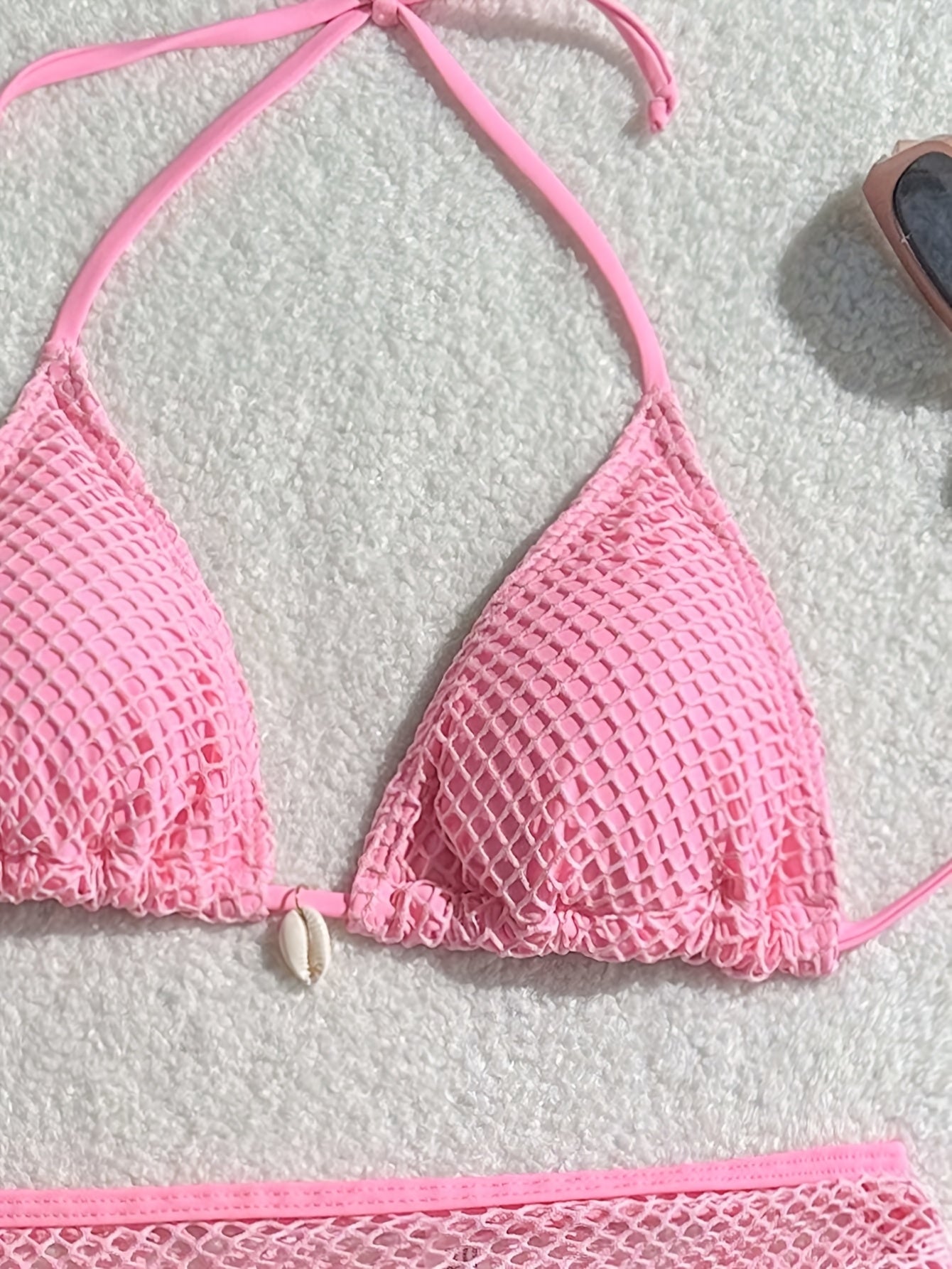 Women 3 Piece Swimsuits - Sexy Triangle Bikini Sets with Cover Up Halter String Suits