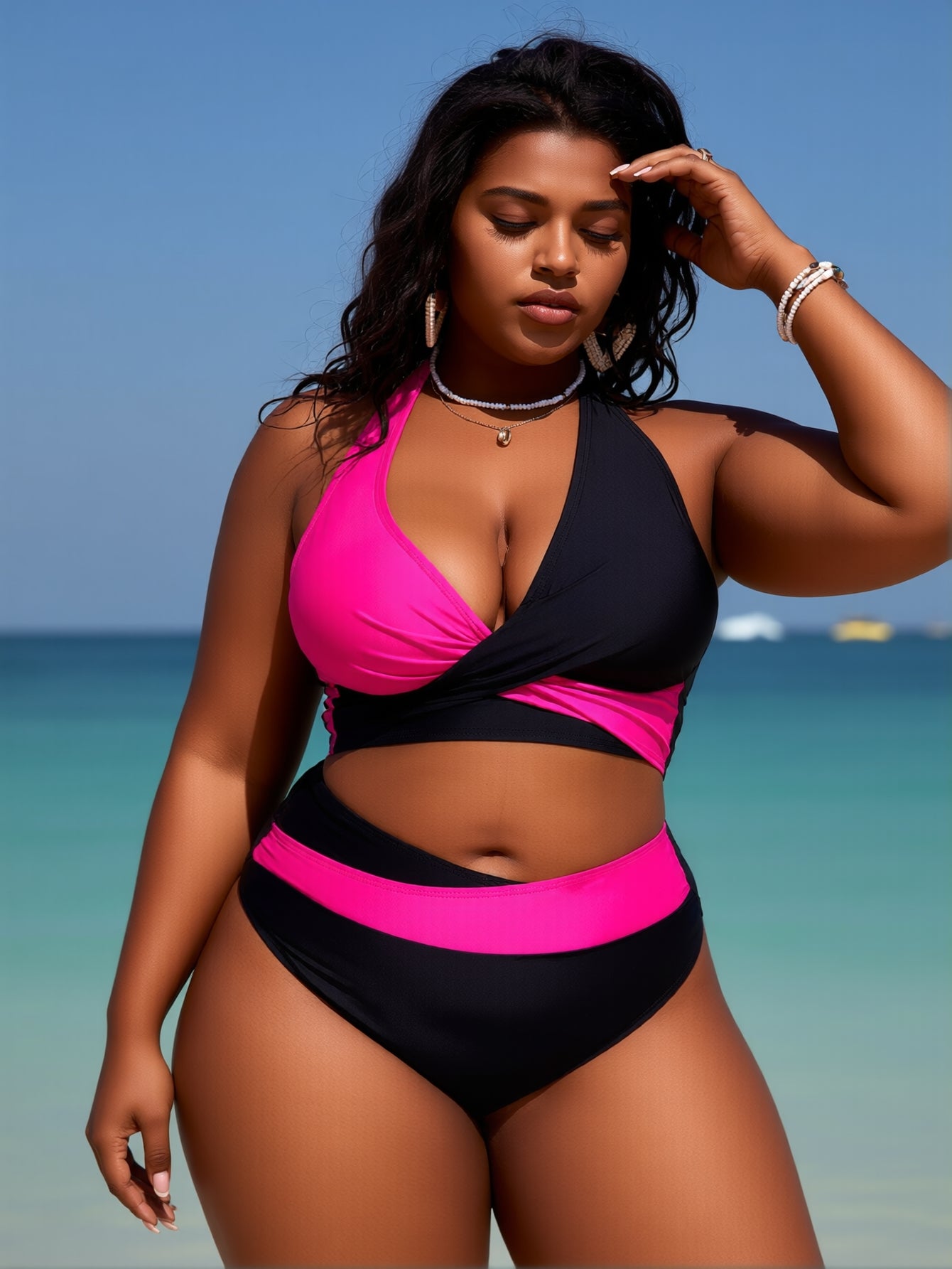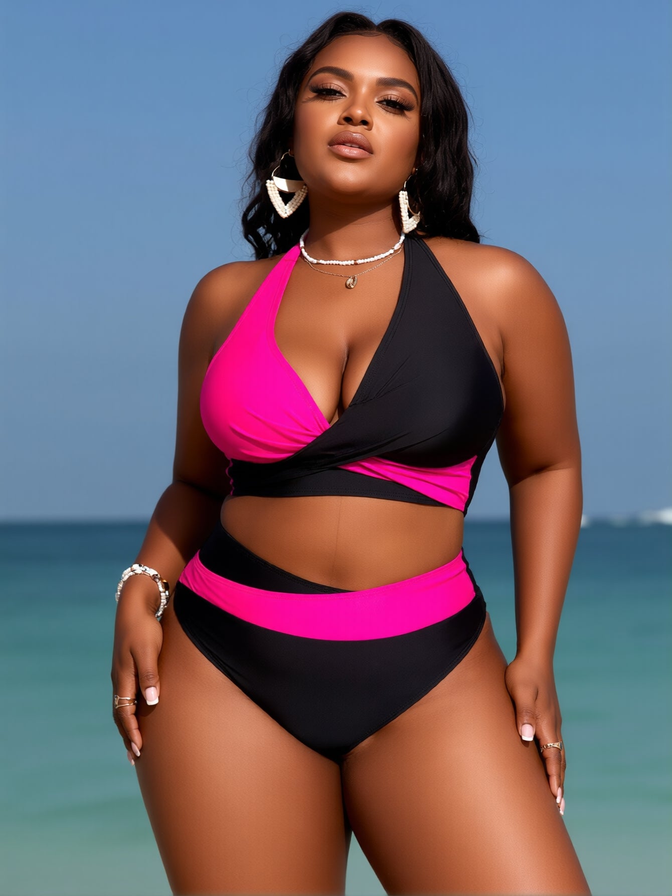 PLUS SIZE Women's Bikini Sets Twist Front Two Piece Swimsuit Halter Bathing Suit