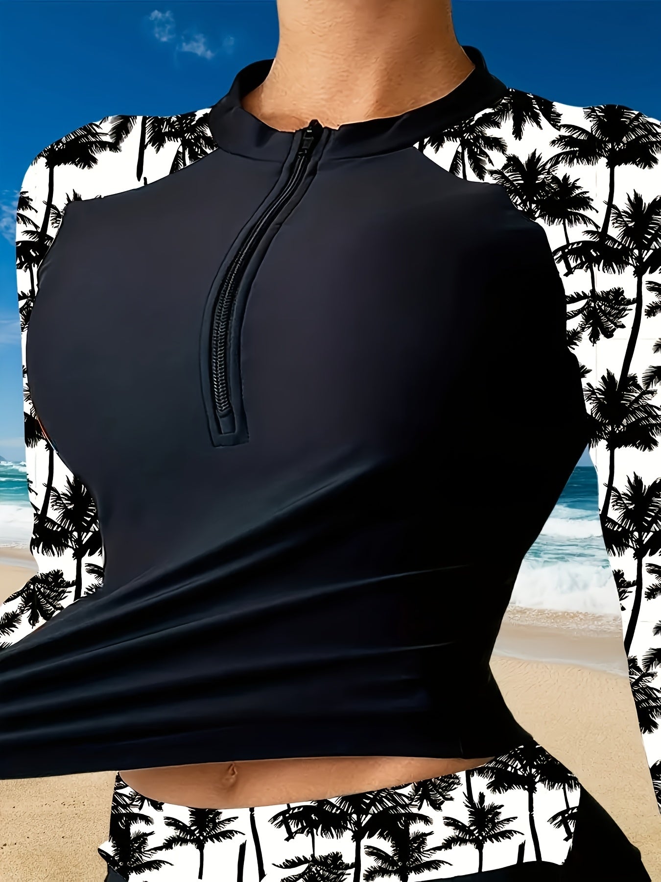 - SLIMMING & ERGONOMIC DESIGN: Look as good as you feel. This trendy 2 piece swimsuit has an ergonomic fit with strategically placed seams that create a slimming, figure-enhancing silhouette. The classic swim top and vibrant floral swim shorts combine for a stylish, eye-catching look, while the convenient half-zip front allows for easy adjustment and comfort.